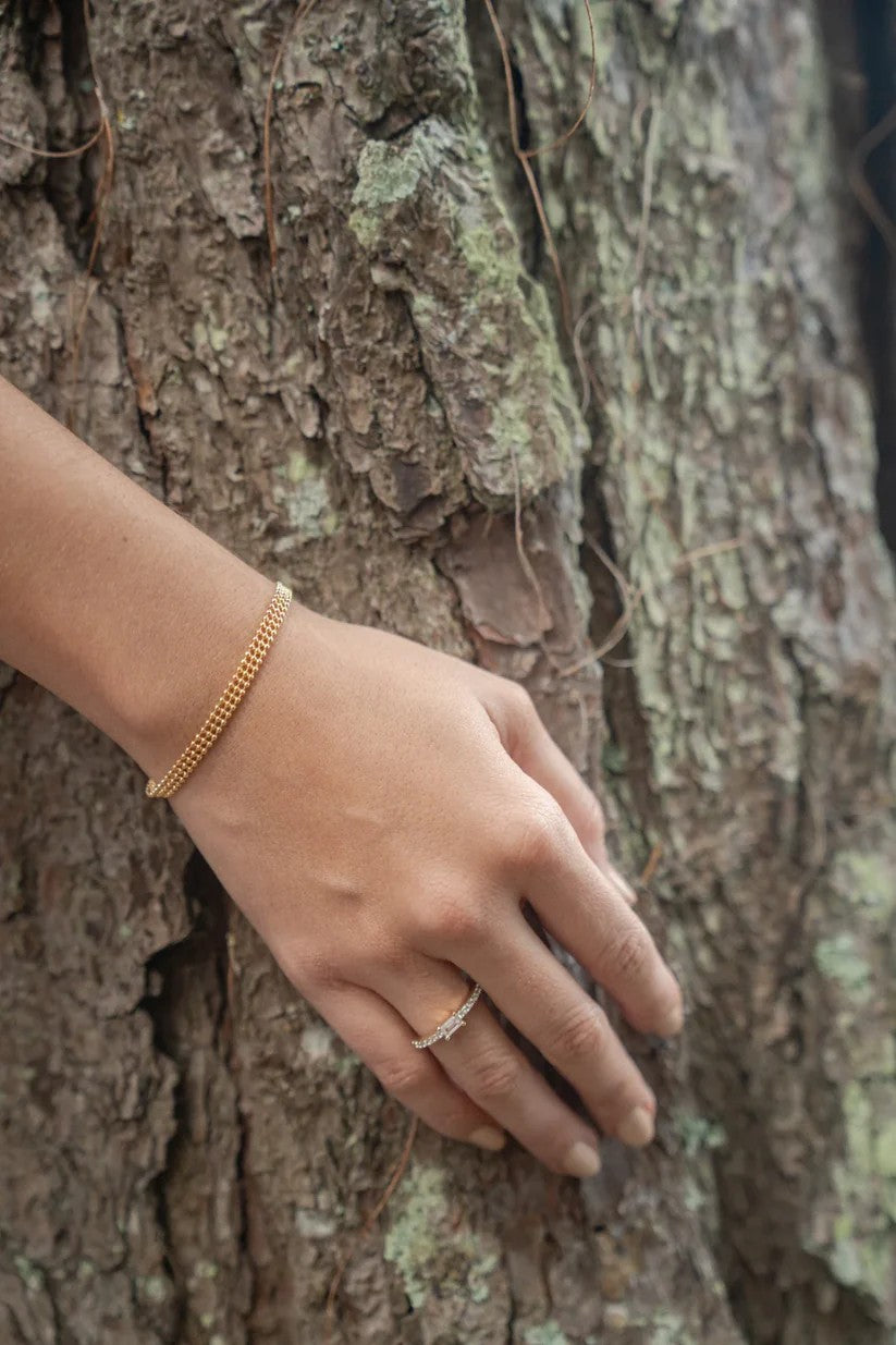 En Oro Y Plata Colombia, utilizamos 5 capas de oro italiano de 18k que recubren una base metálica. Este proceso asegura que nuestras joyas tengan la apariencia y funcionalidad de una pieza de oro macizo, manteniendo el brillo y elegancia, pero a un precio justo y accesible.